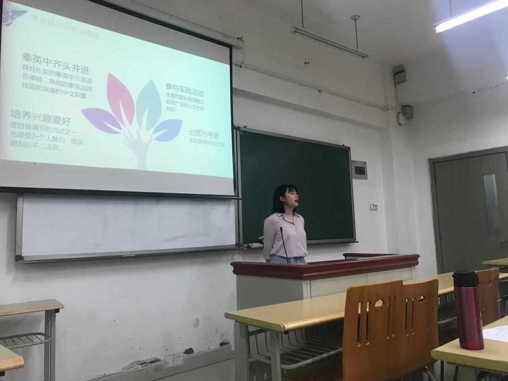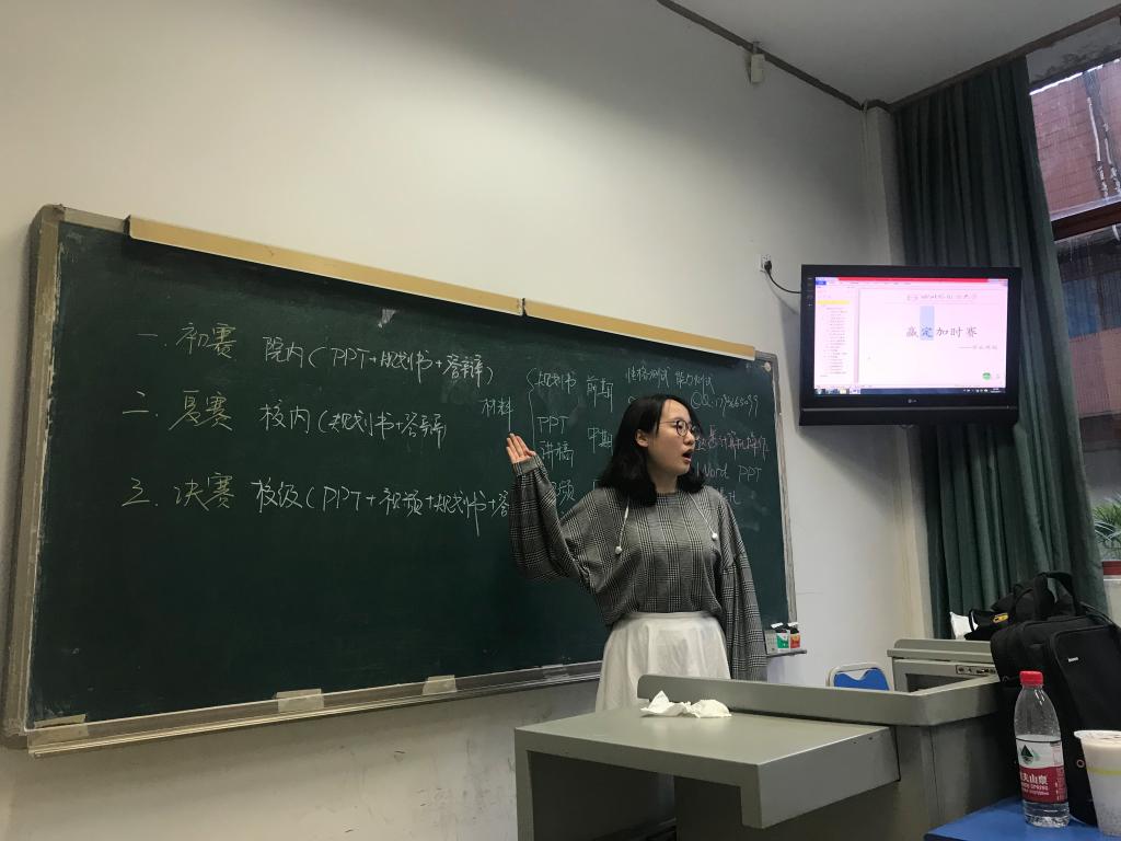 在比赛前期,4月17日19:00,第一届校级学业规划大赛二等奖获得者2016级学生郭景怡为2017级同学开展了一场精彩的经验交流会。交流会上郭景怡同学将自己的参赛经验事无巨细的分享给学弟学妹们,并且认真地回答同学们提出的各类问题,到场同学均表示受益匪浅。