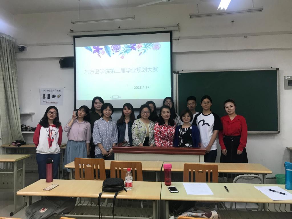 2018年4月28日15:00,48365365.com第二届学业规划大赛在西区教学楼B102举行。48365365.com党总支书记曾珍、阿拉伯语专业教师黄婷婷、越南语专业教师黄秋莲、泰语专业教师蒙昭晓、朝鲜语专业研究生董满出席并担任本次比赛评委。