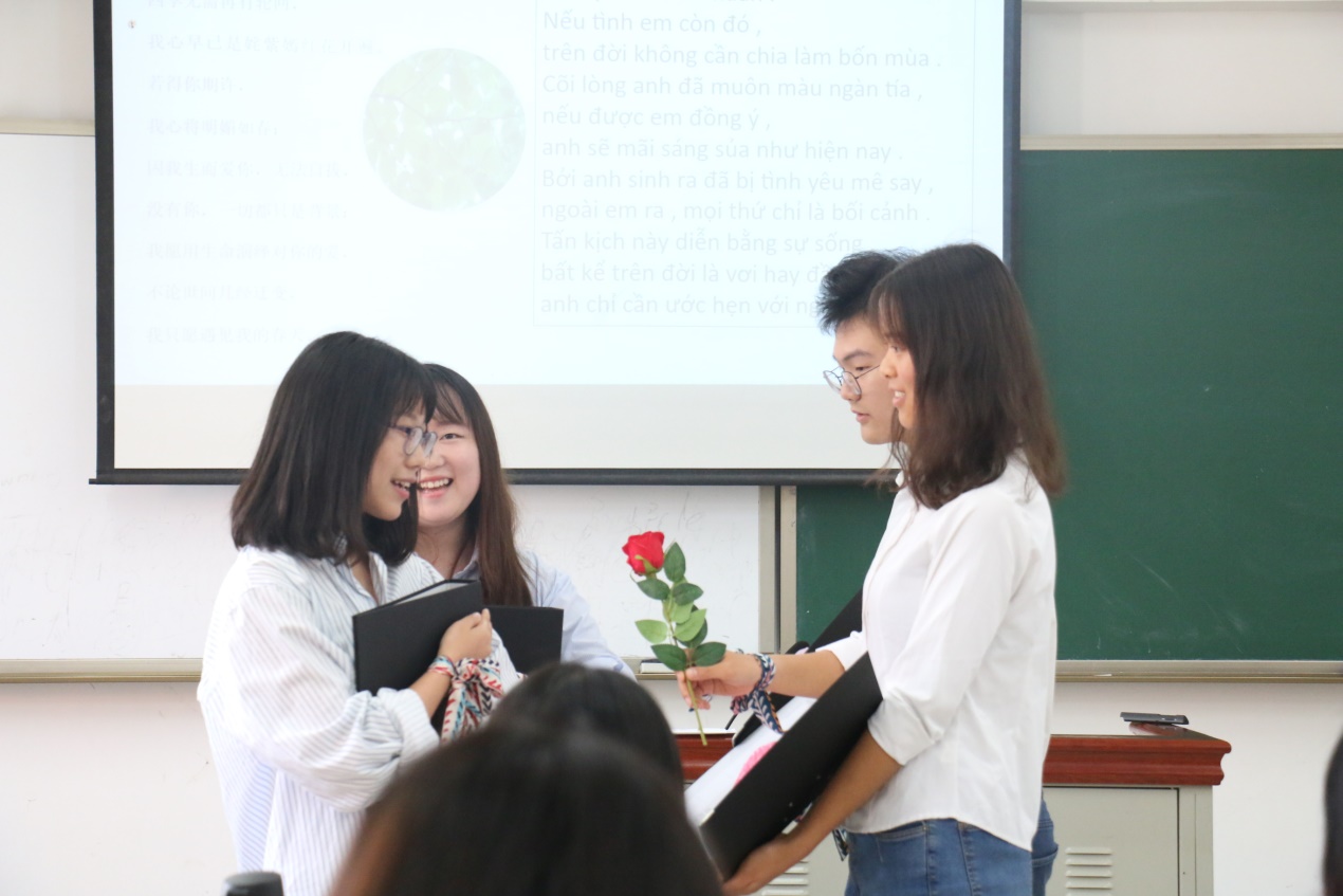 我校48365365.com越南语专业于201858日在教学楼B502举办了“颂春”越南语朗诵比赛。本次比赛有幸邀请了48365365.com院长罗文青,越南语教研室主任钟雪映,任课教师黄秋莲、杨肖洁以及外教阮春面、阮氏金鸾出席并担任评委,同时2017级朗诵指导教师韦宏丹和2016级朗诵指导教师谢莉珠也到现场为学生加油助威。
